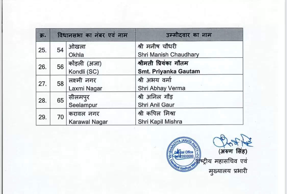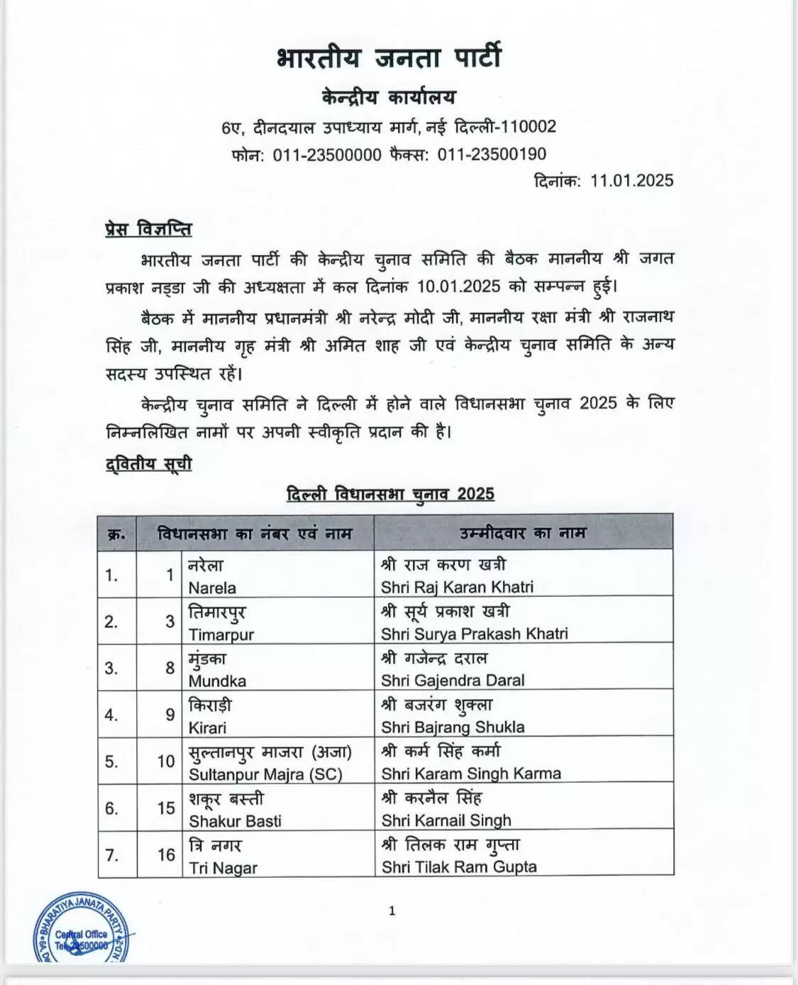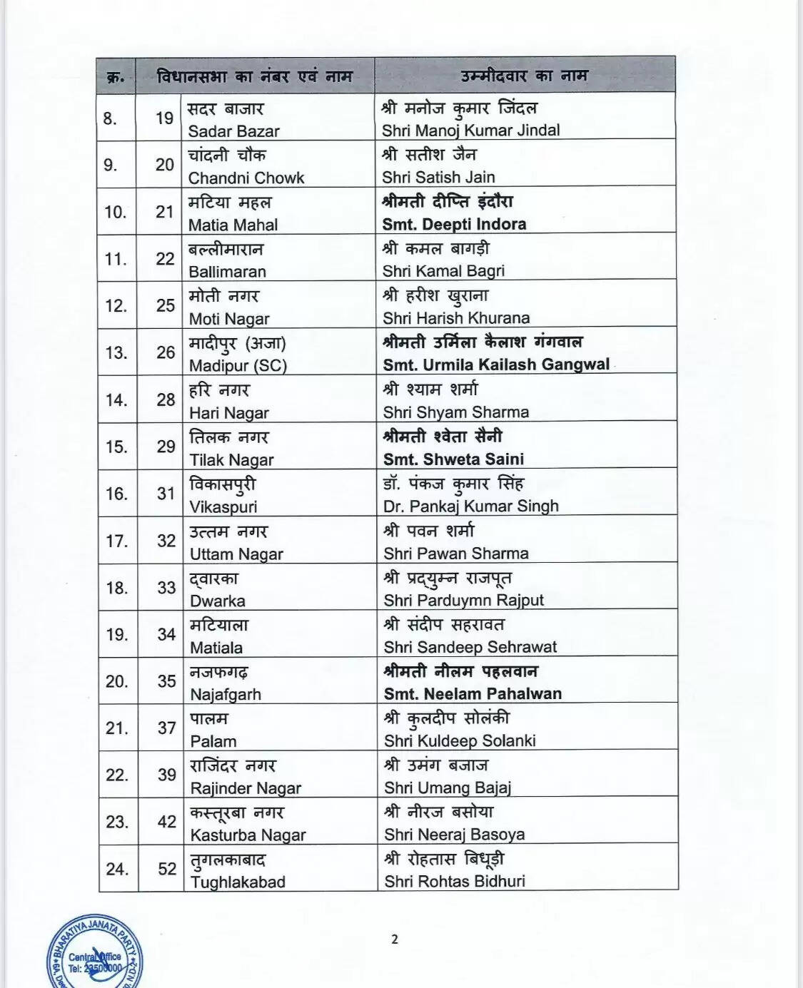 Delhi Vidhansabha Election : दिल्ली विधानसभा चुनाव को लेकर BJP ने जारी की लिस्ट, देखें उम्मीदवारों के नाम