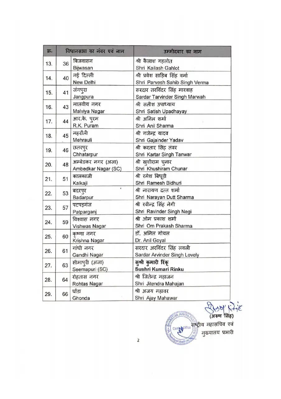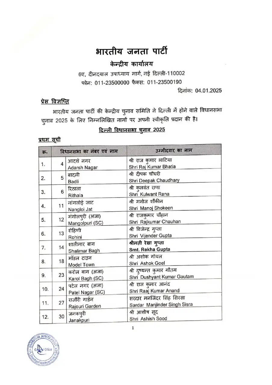 Delhi News : दिल्ली विधानसभा चुनाव को लेकर BJP ने जारी की पहली लिस्ट, देखें उम्मीदवारों के नाम