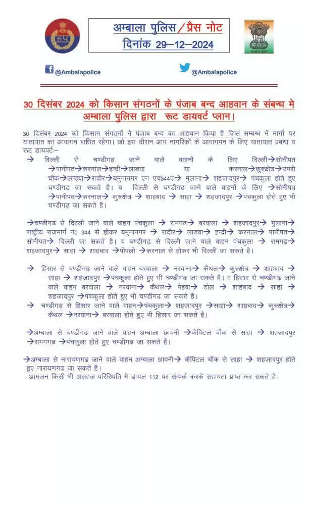 Punjab News : कल 10 घंटे किसानों द्वारा पंजाब बंद का हुआ ऐलान, हरियाणा में भी ये रूट रहेंगे डायवर्ट