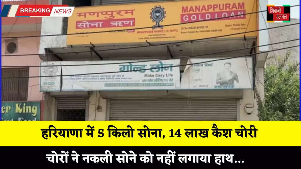 Haryana: हरियाणा से बड़ी खबर सामने आ रही है, हरियाणा के चरखी दादरी में बड़ी ही चालाकी के साथ चोरों द्वारा मणप्पुरम गोल्ड लोन कंपनी की ब्रांच से 5 किलो सोना और 14 लाख रुपए कैश चोरी करने का मामला सामने आया है। जानकारी के अनुसार, चोरी हुआ सोना करीब 450 लोगों का था।