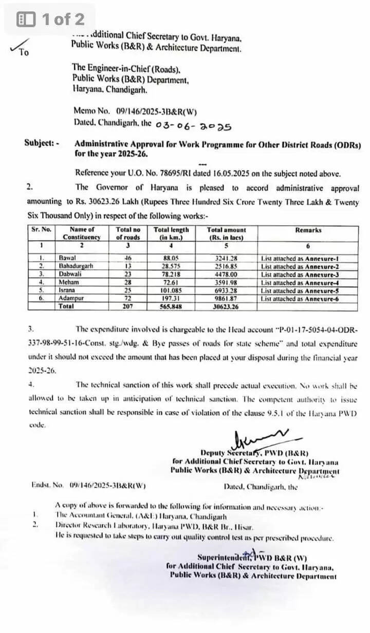 Haryana: हरियाणा वासियों के लिए बड़ी खुशखबरी आई है। हरियाणा के आदमपुर हलके समेत इन जगहों की सड़कों के नवीनीकरण को मंज़ूरी मिल गई है। आइए देखते है इस लिस्ट के अनुसार किन सड़कों को दोबारा तैयार किया जाएगा।