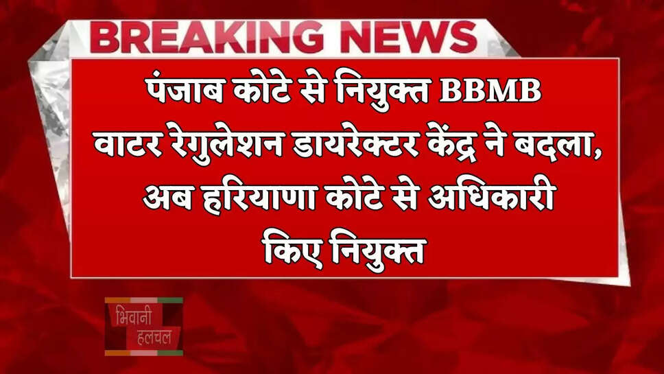 पंजाब कोटे से नियुक्त BBMB वाटर रेगुलेशन डायरेक्टर केंद्र ने बदला, अब हरियाणा कोटे से अधिकारी किए नियुक्त