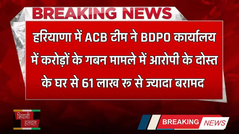 Haryana: हरियाणा में ACB टीम ने BDPO कार्यालय में करोड़ों के गबन मामले में आरोपी के दोस्त के घर से 61 लाख रू से ज्यादा बरामद