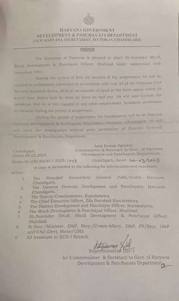 4 मार्च को शाहाबाद के सरपंचों ने चंडीगढ़ में मुख्यमंत्री नायब सैनी से मुलाकात करके बीडीपीओ नरेंद्र ढुल शिकायत की थी।