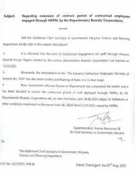यह खबर उन हजारों अनुबंध कर्मचारियों के लिए महत्वपूर्ण है, जो HKRNL के माध्यम से राज्य सरकार के विभिन्न विभागों में कार्यरत हैं।