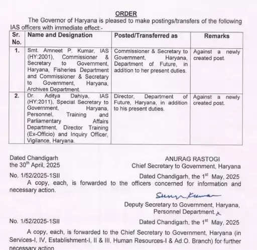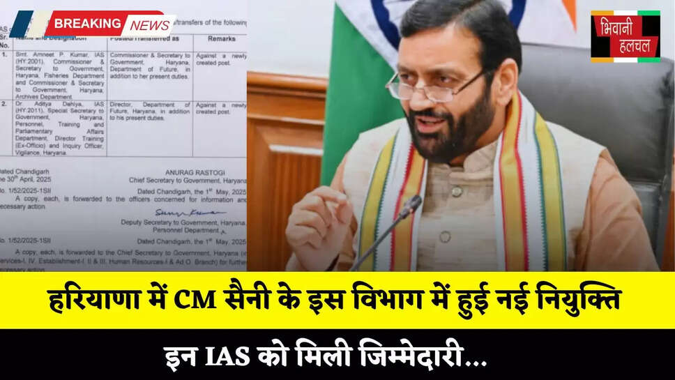 Haryana: हरियाणा में CM सैनी के इस विभाग में हुई नई नियुक्ति, इन IAS को मिली जिम्मेदारी