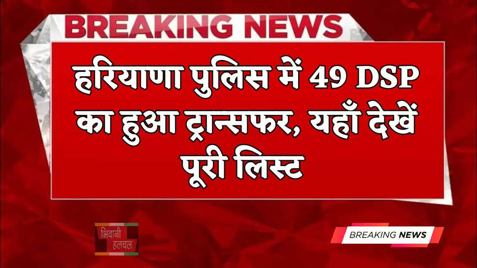 Haryana DSP Transfer : हरियाणा पुलिस में 49 DSP का हुआ ट्रान्सफर, यहाँ देखें पूरी लिस्ट