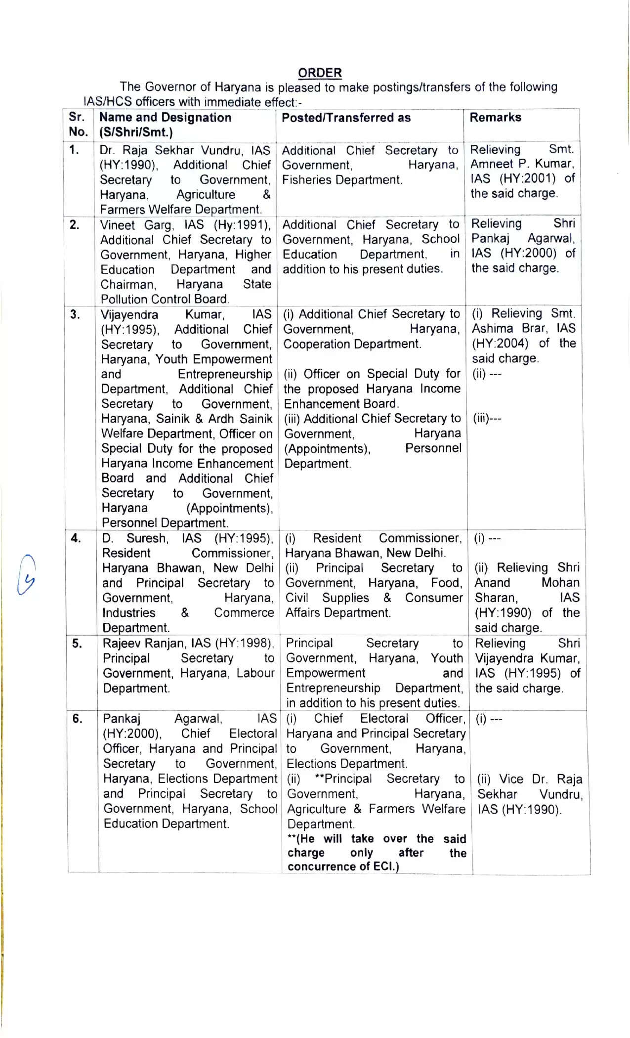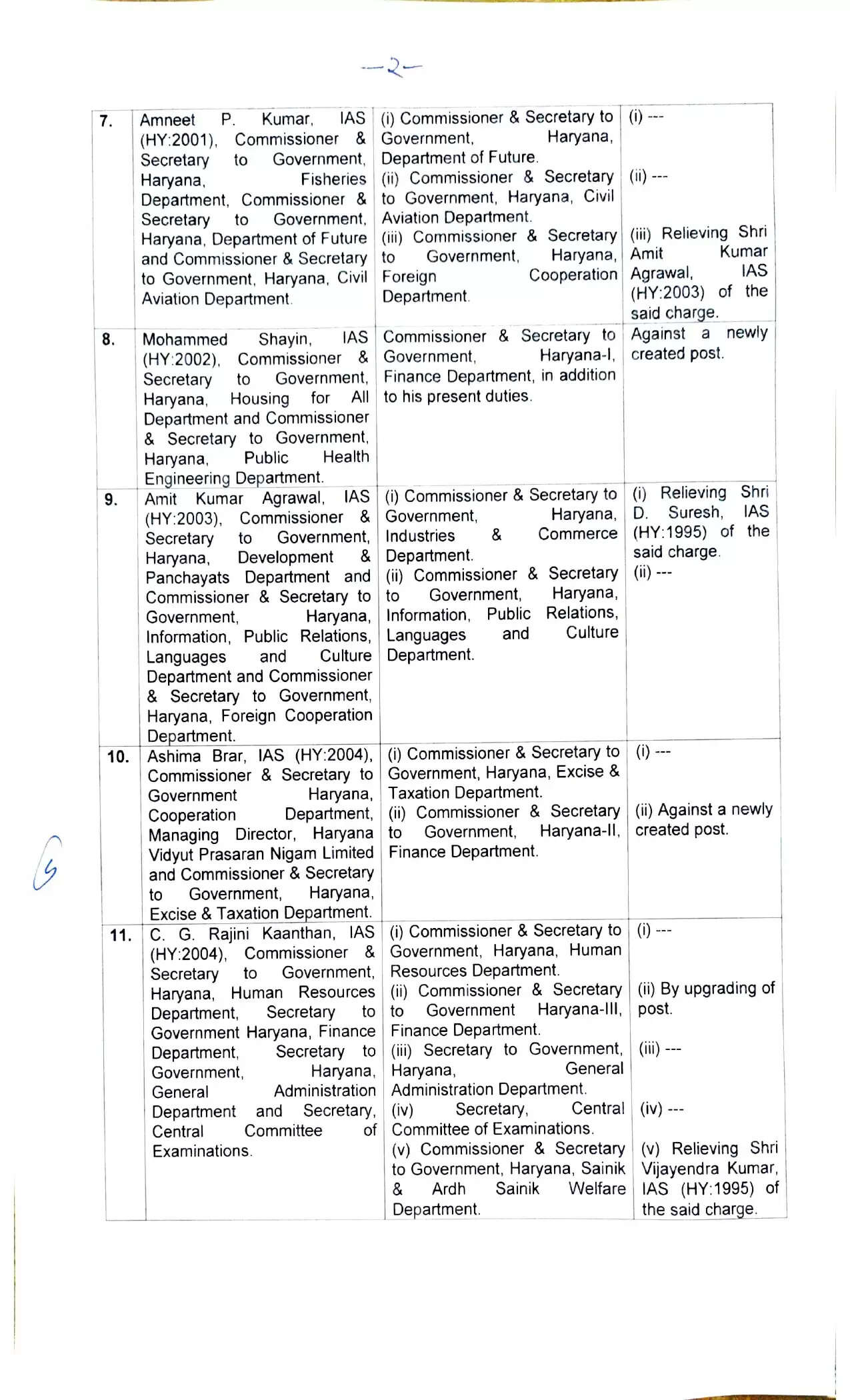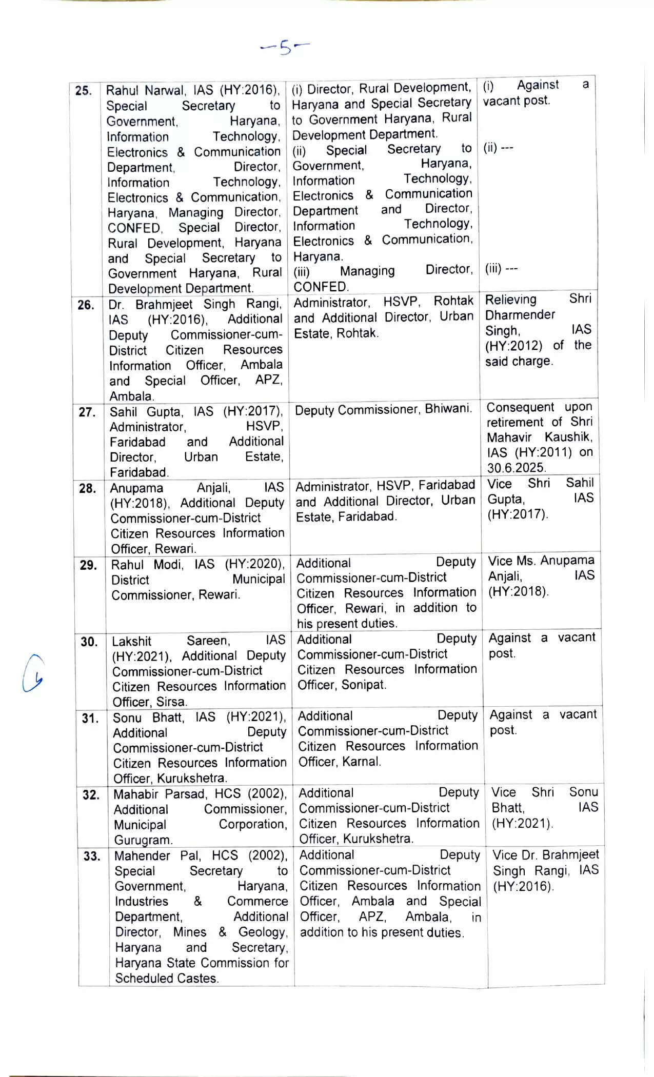 Haryana news : हरियाणा में बड़ा प्रशासनिक फेरबदल, इन IAS और HCS अधिकारियों के हुए तबादले