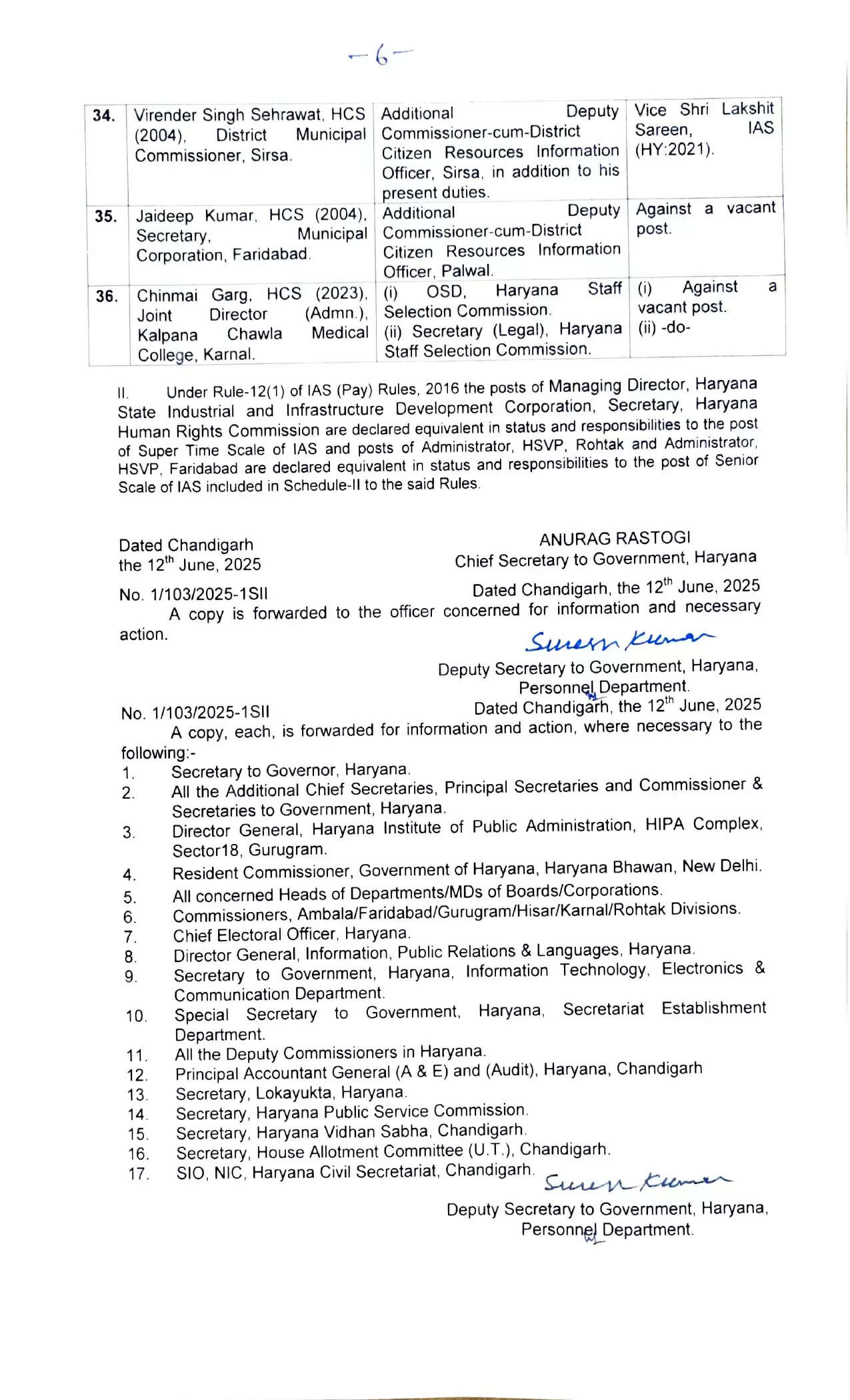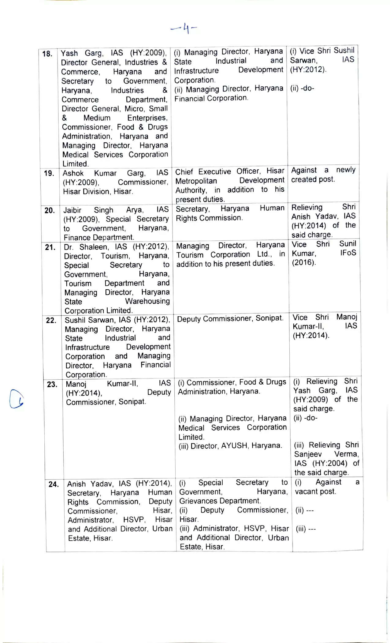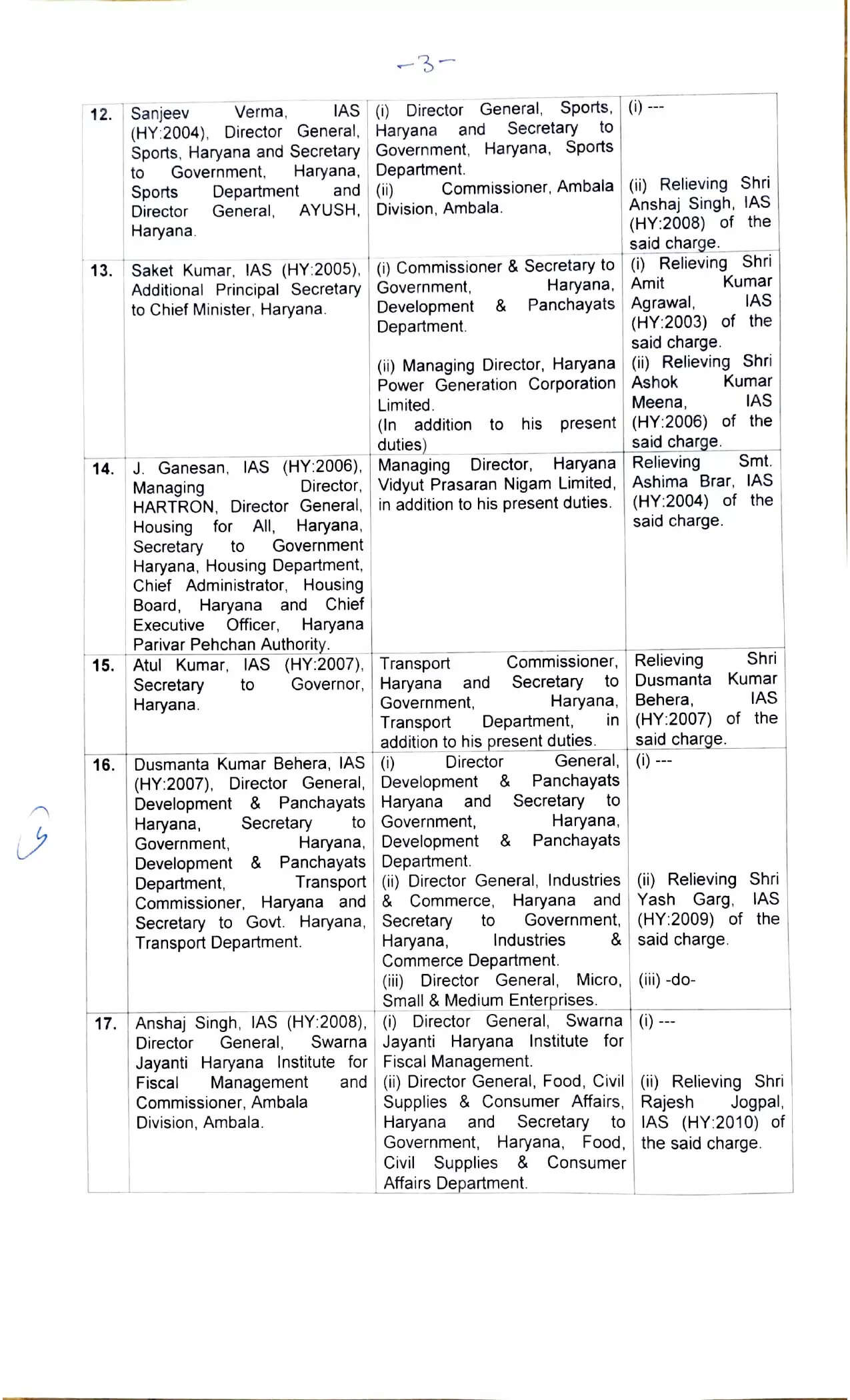 Haryana news : हरियाणा में बड़ा प्रशासनिक फेरबदल, इन IAS और HCS अधिकारियों के हुए तबादले