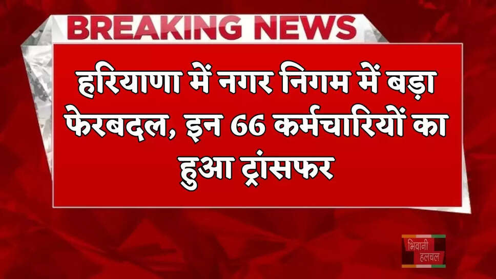 Haryana: हरियाणा में नगर निगम में बड़ा फेरबदल, इन 66 कर्मचारियों का हुआ ट्रांसफर
