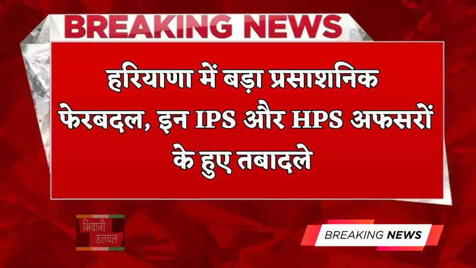 Haryana news : हरियाणा में बड़ा प्रसाशनिक फेरबदल, इन IPS और HPS अफसरों के हुए तबादले