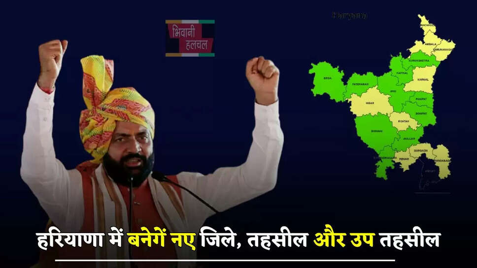 प्रदेश में नए जिले, मंडल, तहसील और उपतहसील बनाने को लेकर प्रदेश सरकार ने विकास एवं पंचायत मंत्री कृष्ण लाल पंवार की अध्यक्षता में कमेटी गठित कर रखी है। इसमें राजस्व एवं निकाय मंत्री विपुल गोयल, संसदीय कार्य मामले मंत्री महीपाल सिंह ढांडा और कृषि मंत्री श्याम सिंह राणा शामिल हैं।Haryana news