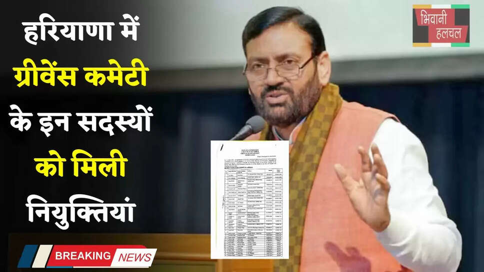 Haryana: हरियाणा से बड़ी खबर सामने आ रही है। हरियाणा सरकार की तरफ से ग्रीवेंस कमेटी के सदस्यों की नियुक्तियां की गई है।