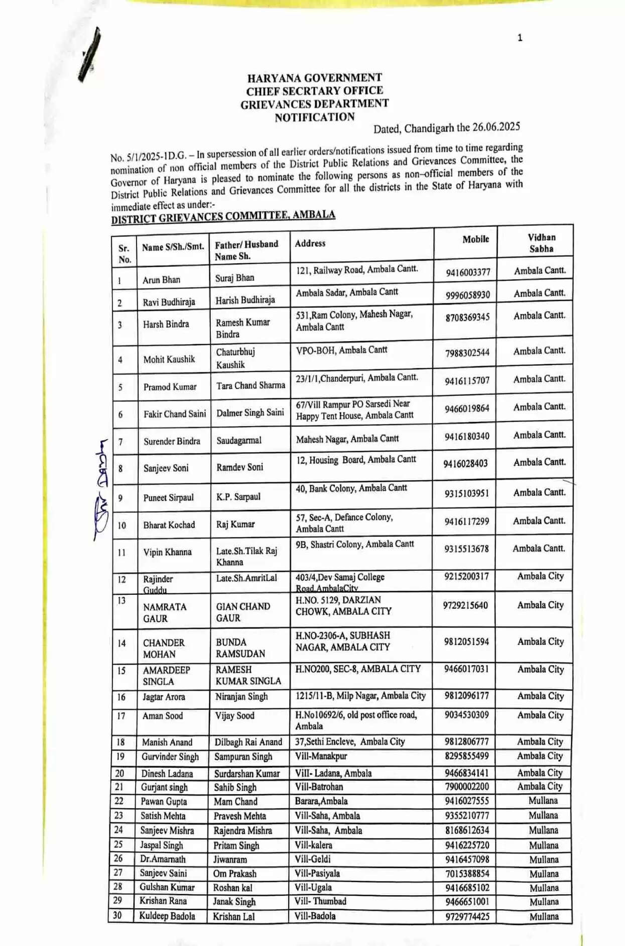 Haryana: हरियाणा में ग्रीवेंस कमेटी के इन सदस्यों को मिली नियुक्तियां, देखें किसे मिली जिम्मेदारी ?