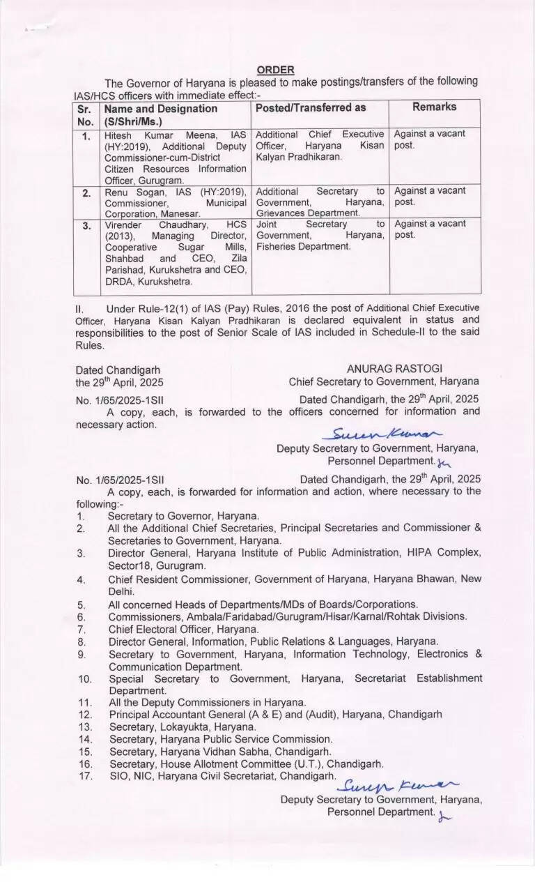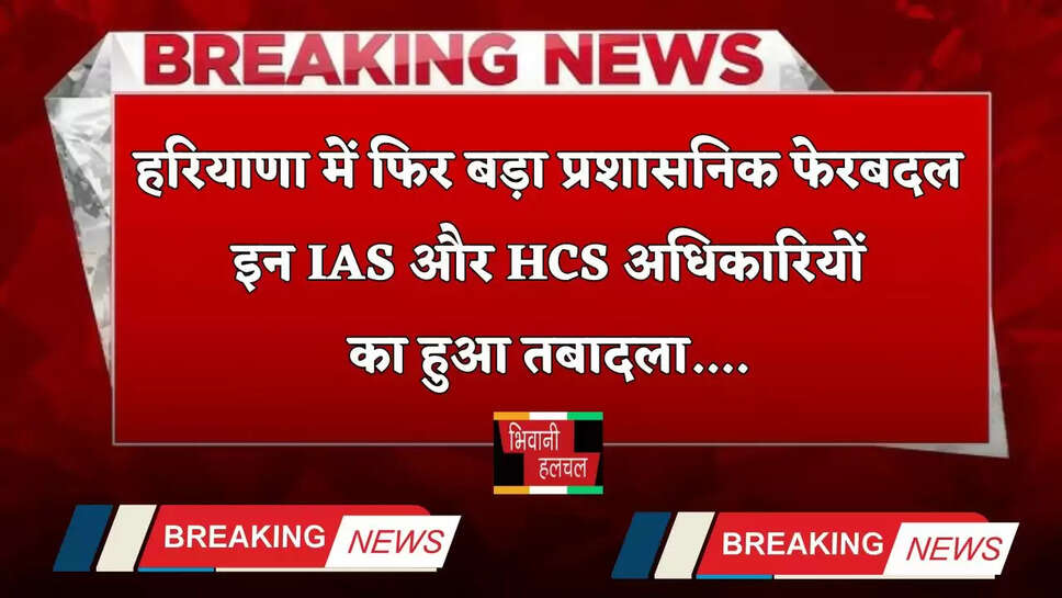 Haryana Transfer: हरियाणा में फिर बड़ा प्रशासनिक फेरबदल, इन IAS और HCS अधिकारियों का हुआ तबादला