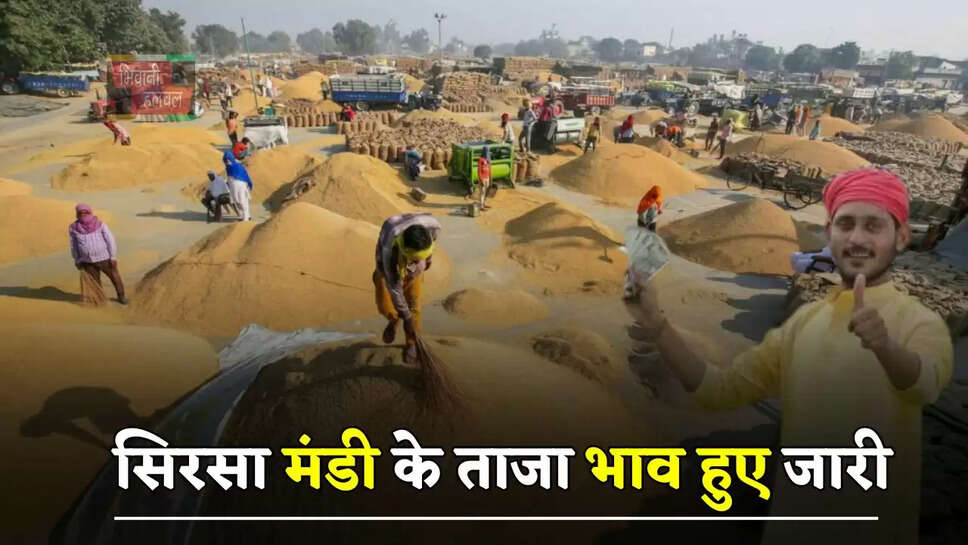 Mandi Bhav: हरियाणा की सबसे मशहूर सिरसा मंडी के ताजा भाव जारी हो गए है आइए जानते है आज सिरसा मंडी में सभी फसलें किस भाव पर बिक रही है, आइए जानते सभी फसलों के नए दाम। मंडी में सभी फसलों की आवक जोरों शोरों से हो रही है, जिससे भाव में लगातार उतार चढ़ाव हो रहें है।