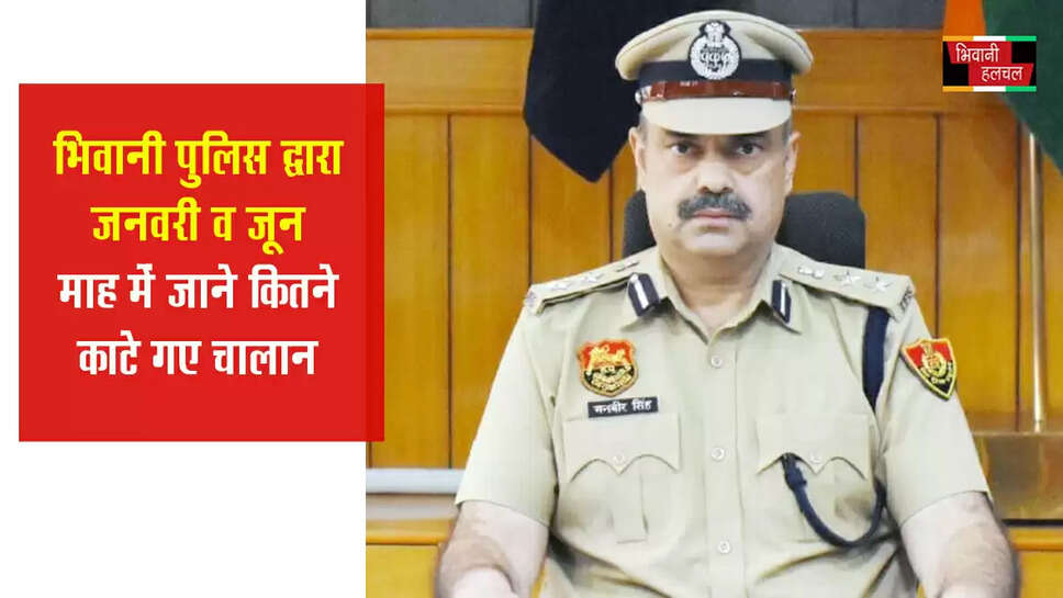 जिला पुलिस भिवानी के द्वारा दिनांक 01.01. 2025 से 30.06.2025 तक जिला भिवानी में मोटर वाहन अधिनियम की उल्लंघना करने वाले वाहन चालकों के विरुद्ध निम्नलिखित चालान किए गए हैं। जिला पुलिस भिवानी के द्वारा पिछले 06 महिने में मोटर वाहन अधिनियम के तहत कुल 28,926 चालान किए गए हैं।