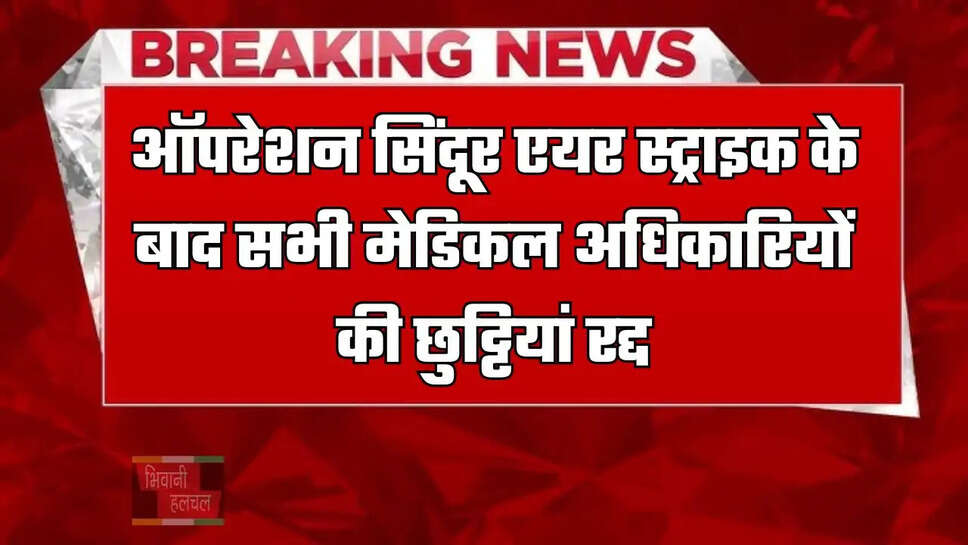 ऑपरेशन सिंदूर एयर स्ट्राइक के बाद सभी मेडिकल अधिकारियों की छुट्टियां रद्द , इमरजेंसी ड्यूटी के लिए तैयार रहने के आदेश जारी