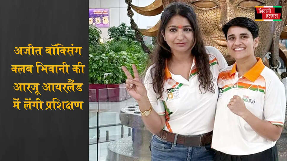 अजीत बॉक्सिंग क्लब की महिला मुक्केबाज आरजू का आयरलैंड में बाक्सिंग के प्रशिक्षण के लिए चयन हुआ है। कोच नवीन बल्हारा फ्रूटी ने बताया कि भारतीय बाक्सिंग टीम के साथ यूथ महिलाओं की मुख्य प्रशिक्षक अमनप्रीत के नेतृत्व में आयरलैंड में मुक्केबाजी का प्रशिक्षण हासिल करेंगी। उन्होंने बताया कि आरजू इससे पहले भी अन्तरराष्ट्रीय स्तर पर भारत का प्रतिनिधित्व कर चुकी है।