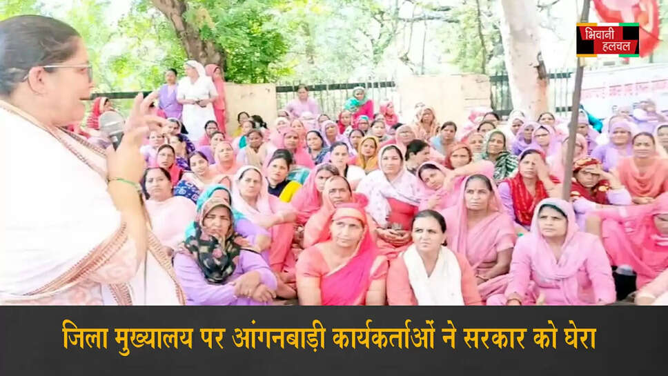 जिला मुख्यालय पर आंगनबाड़ी कार्यकर्ता पसीने में हुई तरबतर,सरकार को घेरा
