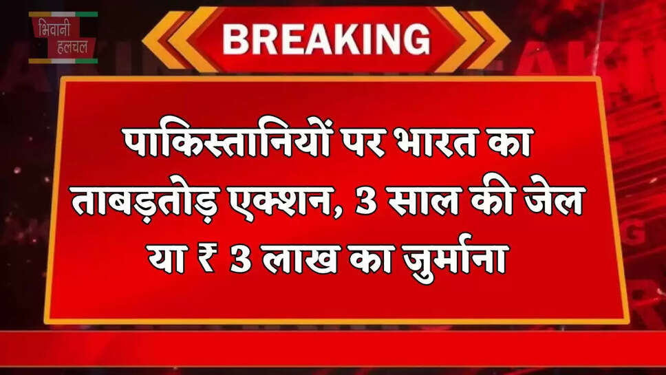Breaking: पाकिस्तानियों पर भारत का ताबड़तोड़ एक्शन, 3 साल की जेल या ₹ 3 लाख का जुर्माना