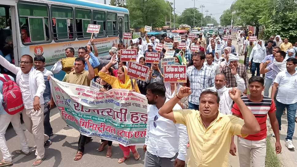 35400 वेतनमान की मांग को लेकर लिपिक एक बार फिर उतरे सडक़ों पर, फूंका सरकार का पुतला