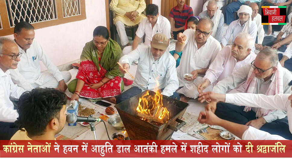 जम्मू-कश्मीर के पहलगाम में आतंकी हमले में मारे गए लोगों की आत्मा की शांति के लिए कांग्रेस नेताओं एवं कार्यकर्ताओं द्वारा रविवार को स्थानीय तेलीवाड़ा में हवन का आयोजन किया गया तथा भगवान से दिवंग्त आत्मओं की शांति के लिए प्रार्थना की गई।
