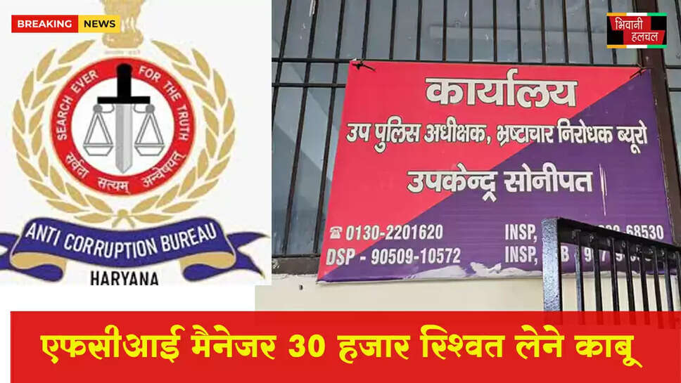 सोनीपत में भ्रष्टाचार के खिलाफ चलाए जा रहे अभियान के तहत एंटी करप्शन ब्यूरो (ACB) की टीम को एक और बड़ी सफलता मिली है। सोनीपत जिले के गोहाना में स्थित भारतीय खाद्य निगम (FCI) के कार्यालय में कार्यरत मैनेजर को रिश्वत लेते हुए रंगे हाथों गिरफ्तार किया गया है।