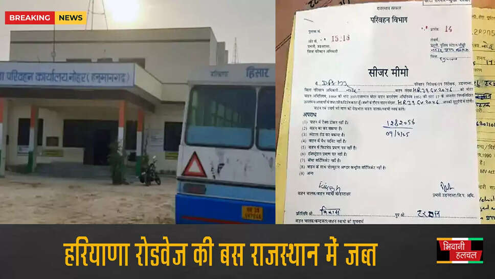 सूरतगढ़ से हिसार आ रही थी बस हरियाणा रोडवेज की बस के ड्राइवर विकास ने बताया है कि बस बुधवार दोपहर को सूरतगढ़ से हिसार आ रही थी। इसी दौरान उसे नोहर में आरटीओ टीम ने रोका लिया। बस के कागजों और यात्रियों की जांच की गई। इसके बाद टीम ने बस जब्त कर चालान काट दिया।