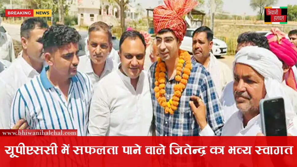 यूपीएससी में सफलता पाने वाले चरखी दादरी जिले के गांव मांढी पीरानू निवासी जितेंद्र का शुक्रवार को गांव पहुंचने पर जोरदार स्वागत किया गया। इस दौरान बाढड़ा से पूर्व विधायक सुखविंद्र सिंह मांढी सहित ग्रामीणों ने उनका फूल मालाओं से स्वागत किया और पगड़ी पहनाकर सम्मानित किया गया। ग्रामीणों ने उनकी इस उपलब्धि पर खुशी जताते हुए उन्हें बधाई दी।