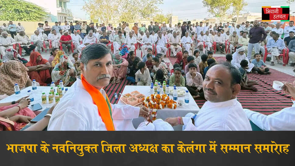 भारतीय जनता पार्टी के नवनियुक्त जिला अध्यक्ष विरेंद्र कौशिक के सम्मान में रविवार को आदर्श गांव केलंगा स्थित राजपूत धर्मशाला में समारोह का आयोजन किया गया। सम्मान समारोह में बतौर मुख्यअतिथि बवानीखेड़ा के विधायक कपूर वाल्मीकि एवं विशिष्ट अतिथि बवानीखेड़ा नगर पालिका चेयरमैन सुंदर अत्री ने शिरकत की। वही कार्यक्रम की अध्यक्षता खरक मंडल अध्यक्ष सरपंच सोनू शर्मा