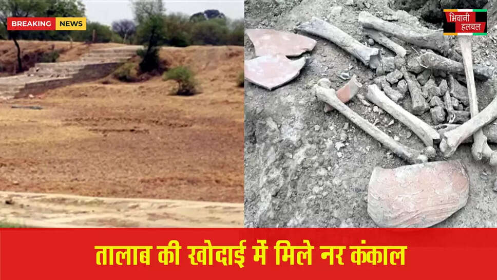 जींद में रविवार को तालाब की खोदाई के समय नर कंकाल मिलने से इलाके में सनसनी फैल गई। यहां एक के बाद एक करीब 10 कंकाल मिले हैं। इनके साथ ही कुछ पुराने मटके भी मिल। इसके बाद खोदाई का काम रोक दिया गया।