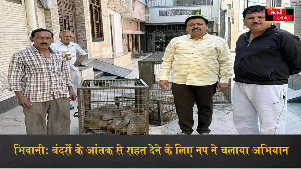 शहर में पिछले कई दिनों से बंदरों ने उत्पाद मचाया हुआ था, जिसके चलते नागरिक खासे परेशान थे तथा नगर परिषद से बंदर पकडऩे के लिए विशेष अभियान चलाने की मांग कर रहे थे। नागरिकों की इसी मांग को ध्यान में रखते हुए भिवानी नगर परिषद के चेयरपर्सन प्रतिनिधि भवानी प्रताप के निर्देशानुसार वन विभाग की सहायता से नगर परिषद ठेकेदार राकेश ने शुक्रवार को शहर में बंदर पकडऩे का अभियान चलाया गया।