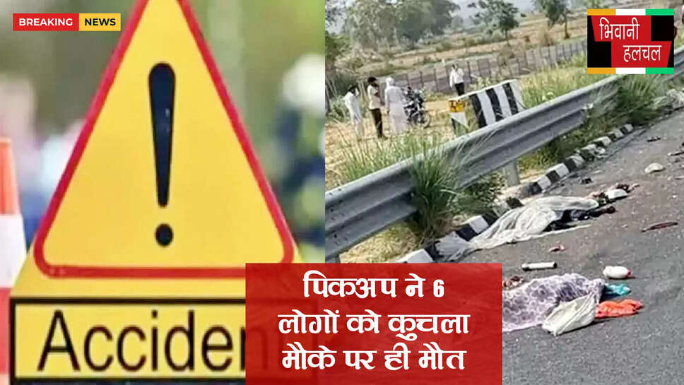 हरियाणा के नूंह में शनिवार सुबह दिल्ली-मुंबई एक्सप्रेसवे पर तेज रफ्तार पिकअप ने लोगों को कुचल दिया। हादसे में 6 लोगों की मौत हो गई, जबकि 5 से ज्यादा लोग गंभीर घायल हो गए। हादसा इतना भयानक था कि कई शवों के टुकड़े हो गए। ये सभी एक्सप्रेसवे पर सफाई का काम कर रहे थे।