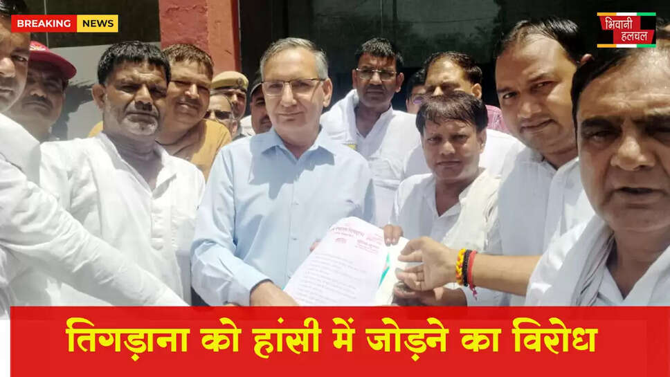 तिगड़ाना को हांसी में शामिल करने का विरोध,उपायुक्त को सौंपा ज्ञापन