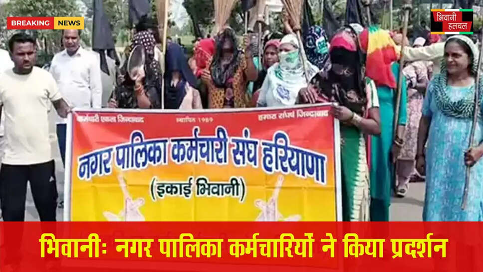 भिवानी में नगर पालिका कर्मचारियों का प्रदर्शन