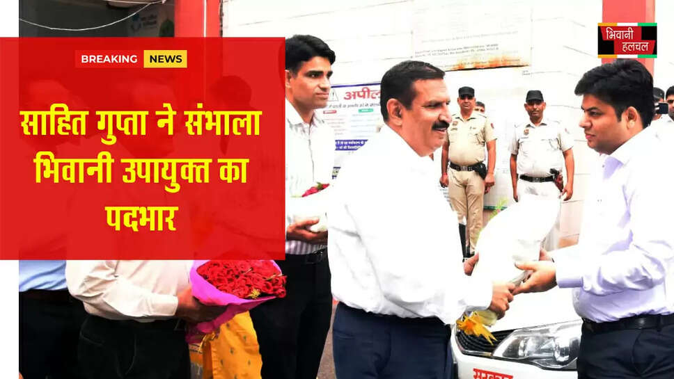 साहिल गुप्ता ने मंगलवार को भिवानी में उपायुक्त का पदभार ग्रहण कर लिया है। लघु सचिवालय में पहुंचने पर अतिरिक्त उपायुक्त डॉ. मुनीष नागपाल, सीईओ जिला परिषद अजय चोपड़ा, एसडीएम भिवानी महेश कुमार, नगराधीश अनिल कुमार, एसडीएम तोशाम डॉ. अशवीर नैन, एसडीएम लोहारू मनोज दलाल, एसडीएम लोहारू विजया मलिक और डीडीपीओ आशीष मान सहित अन्य अधिकारियों ने साहिल गुप्ता को पुष्प गुच्छ भेंट कर उनका स्वागत किया।
