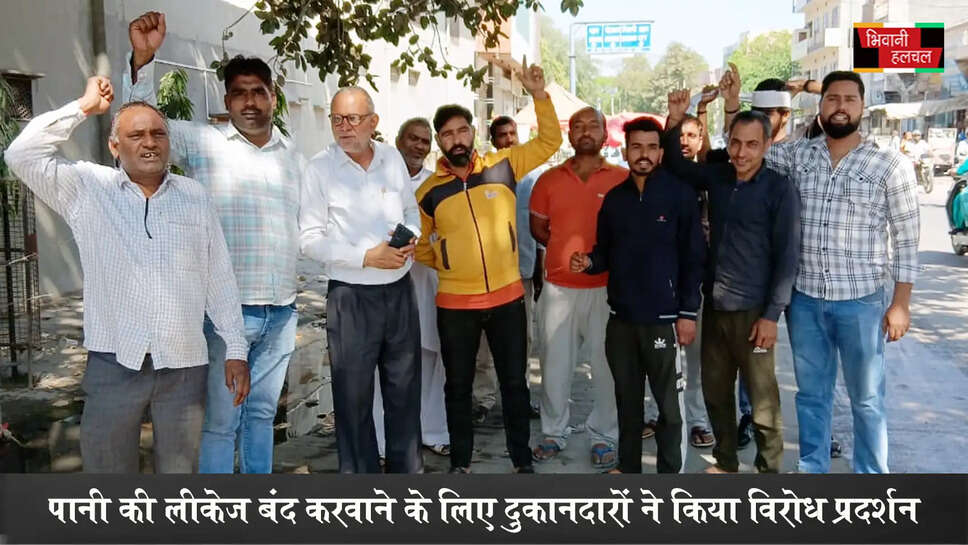 पानी की लीकेज बंद करवाने हेतु दुकनदारों ने किया विरोध प्रदर्शन