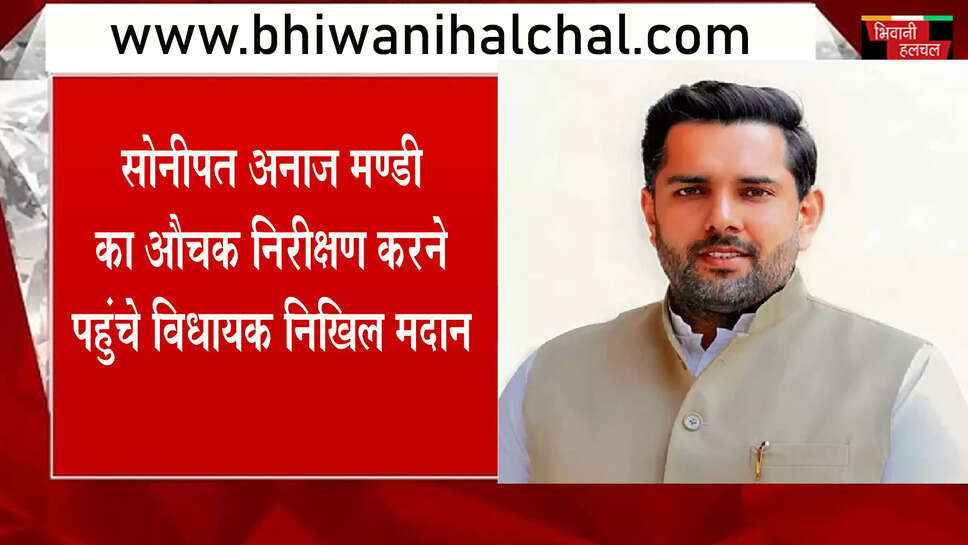 सोनीपत नई अनाज मंडी के औचक निरीक्षण पर पहुंचे विधायक निखिल मदान