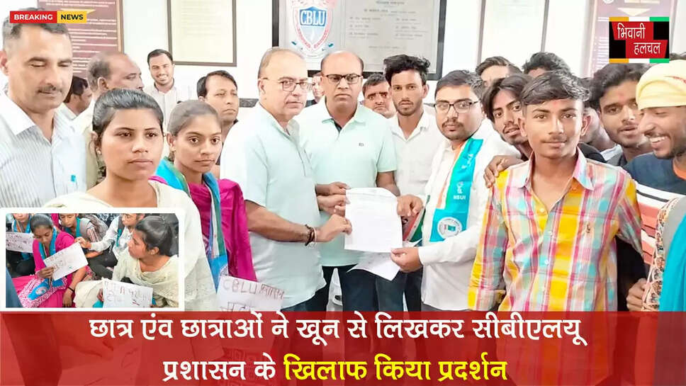 छात्र एवं छात्राओं ने खून से लिखकर बंसीलाल यूनिवर्सिटी प्रशासन के खिलाफ किया प्रदर्शन