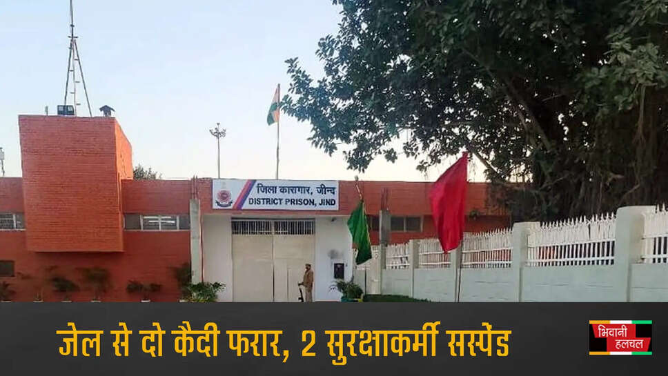 जींद के जिला जेल से राकेश नामक एक कैदी के फरार हो जाने के मामले में 2 सुरक्षा कर्मचारियों को सस्पेंड कर दिया गया है। उन पर ड्यूटी में कोताही बरतने के आरोप हैं। साथ ही इस मामले की नियमित जांच भी शुरू हो गई है। जेल से फरार हुए कैदी का अभी तक सुराग नहीं मिला है।